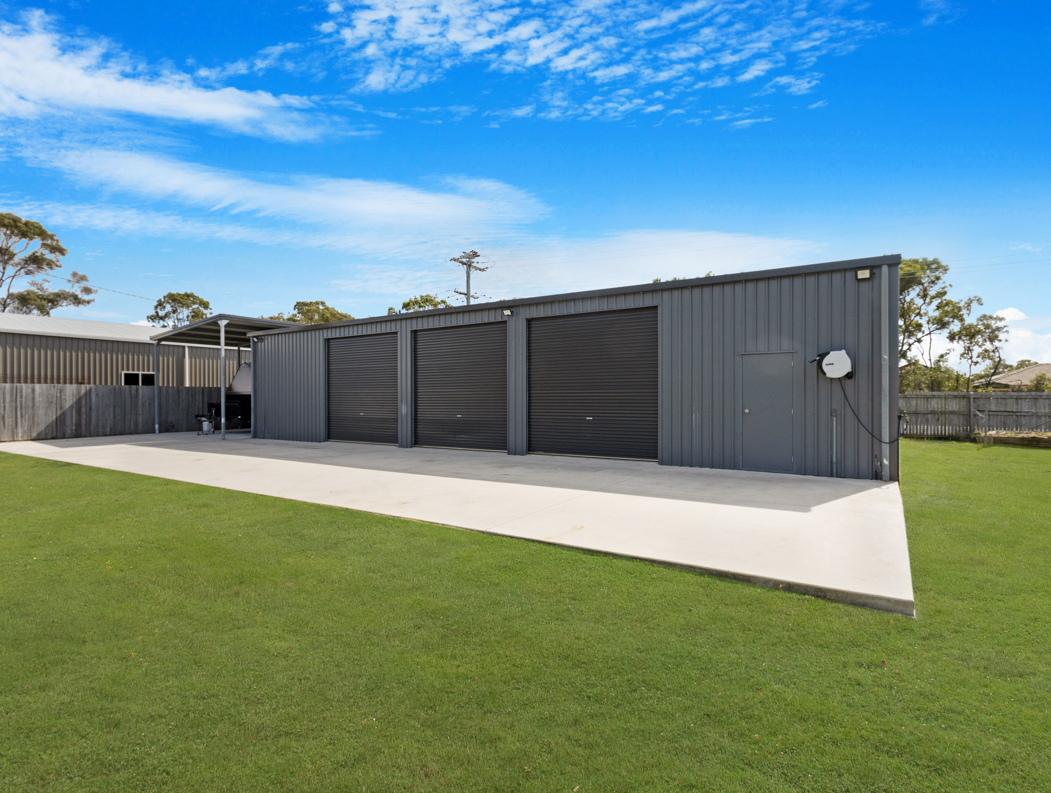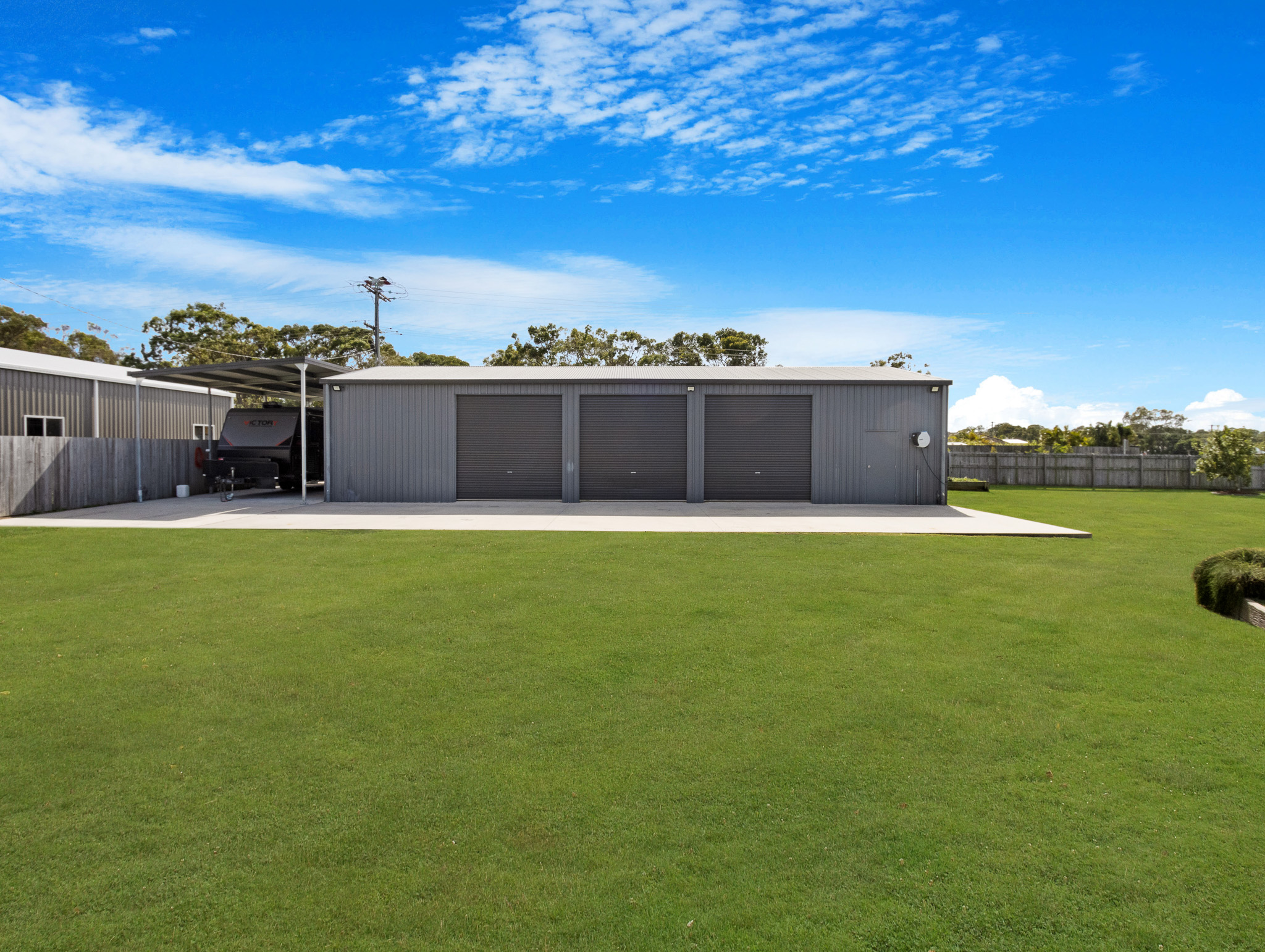 – Huge 4-bay shed (18m x 9m) with 3.1m clearance + 10m x 5m carport