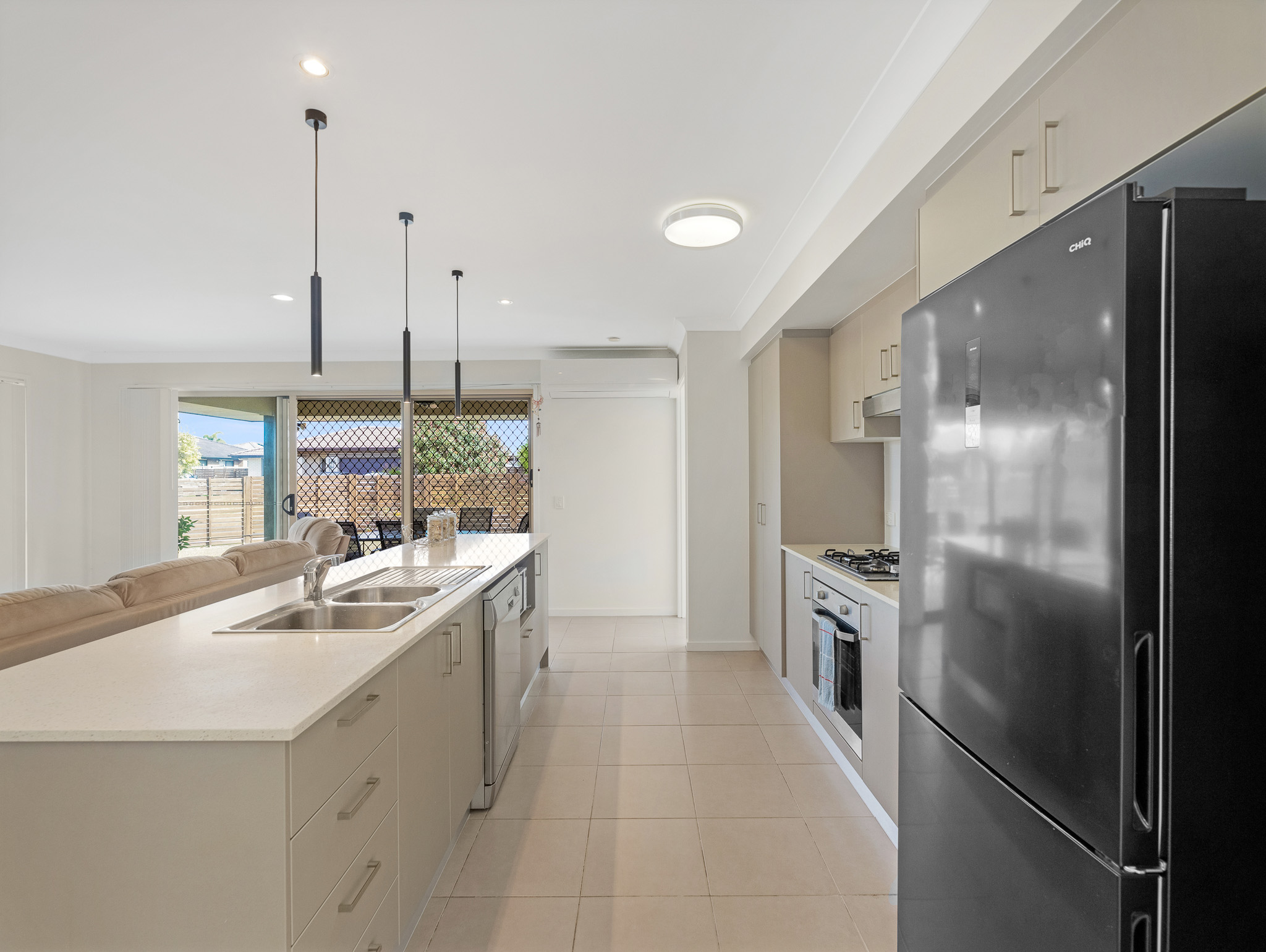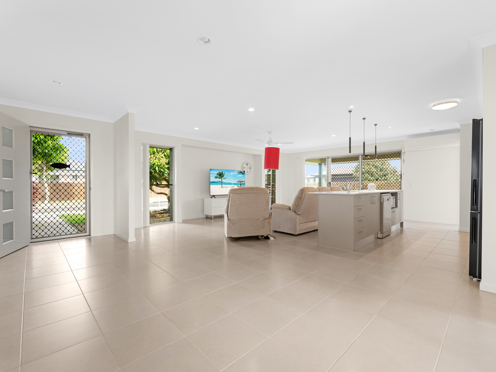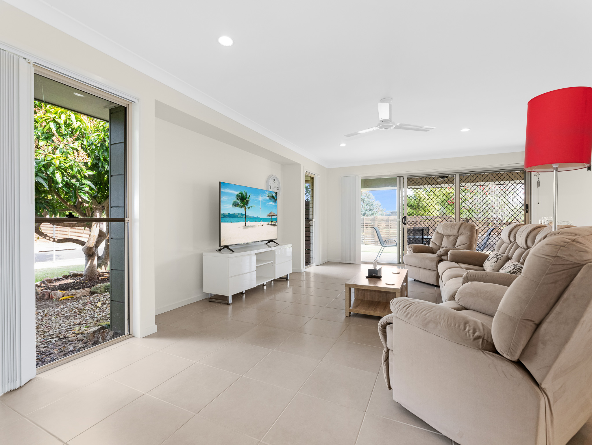 Step inside to discover a bright and airy open-plan layout designed for relaxed living. The central kitchen is the heart of the home, featuring a gas cooktop, island bench, dishwasher, and loads of storage. Flowing seamlessly to the dining and living areas, it’s ideal for entertaining – with two covered patios providing year-round indoor/outdoor enjoyment.